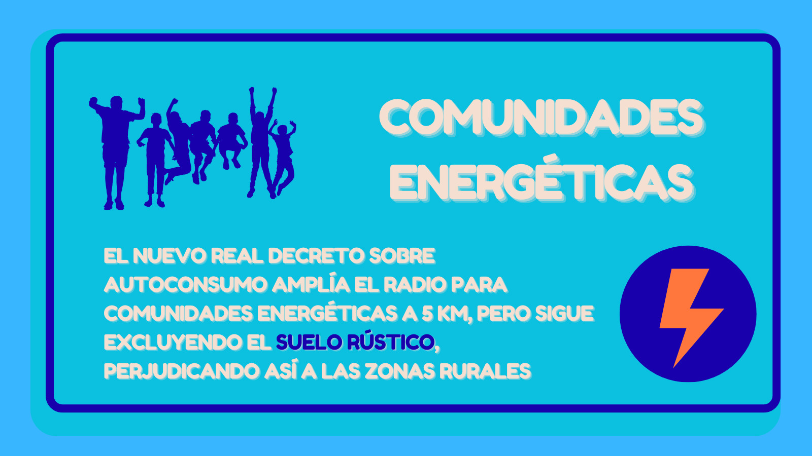 El borrador del Real Decreto supone un avance pero creemos que faltan algunos ajustes clave para que estas mejoras lleguen de verdad al entorno rural. En muchos pueblos no existe suelo industrial disponible para ubicar pequeñas plantas solares comunitarias, y el límite de distancia (aunque se amplía) no contempla la posibilidad de usar suelo rústico para este tipo de proyectos