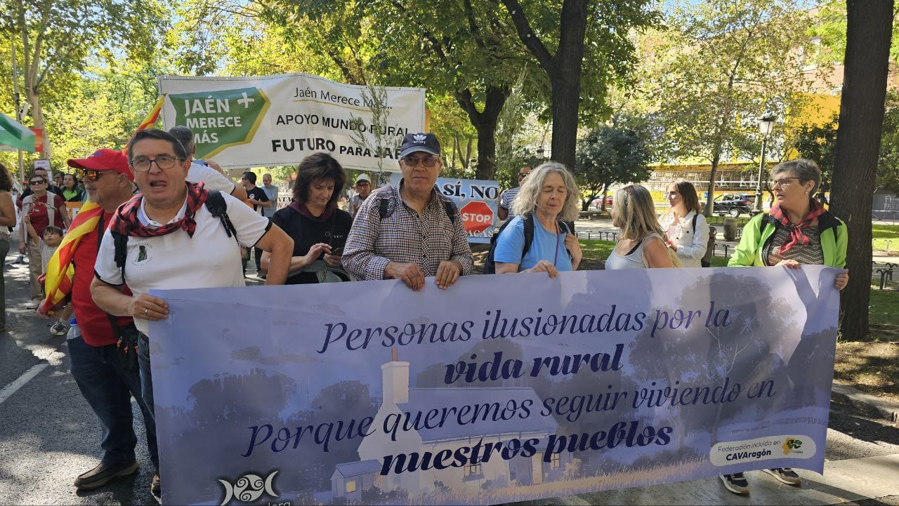 En un ambiente festivo y mezclando todas las demandas por las agresiones especulativas y el abandono que sufre el mundo rural, se han manifestado por el Paseo del Prado colectivos de Murcia, Galicia, Andalucía, Aragón, La Rioja, Extremadura, Castilla y León, Castilla-La Mancha, y la comunidad Valenciana.